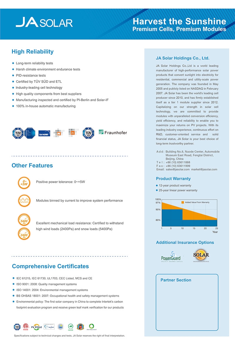 Painel Solar Ja Solar 360W alta eficiência